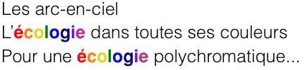 Pour une écologie polychromatique Les « arc-en-ciel » L’écologie dans toutes ses couleurs
